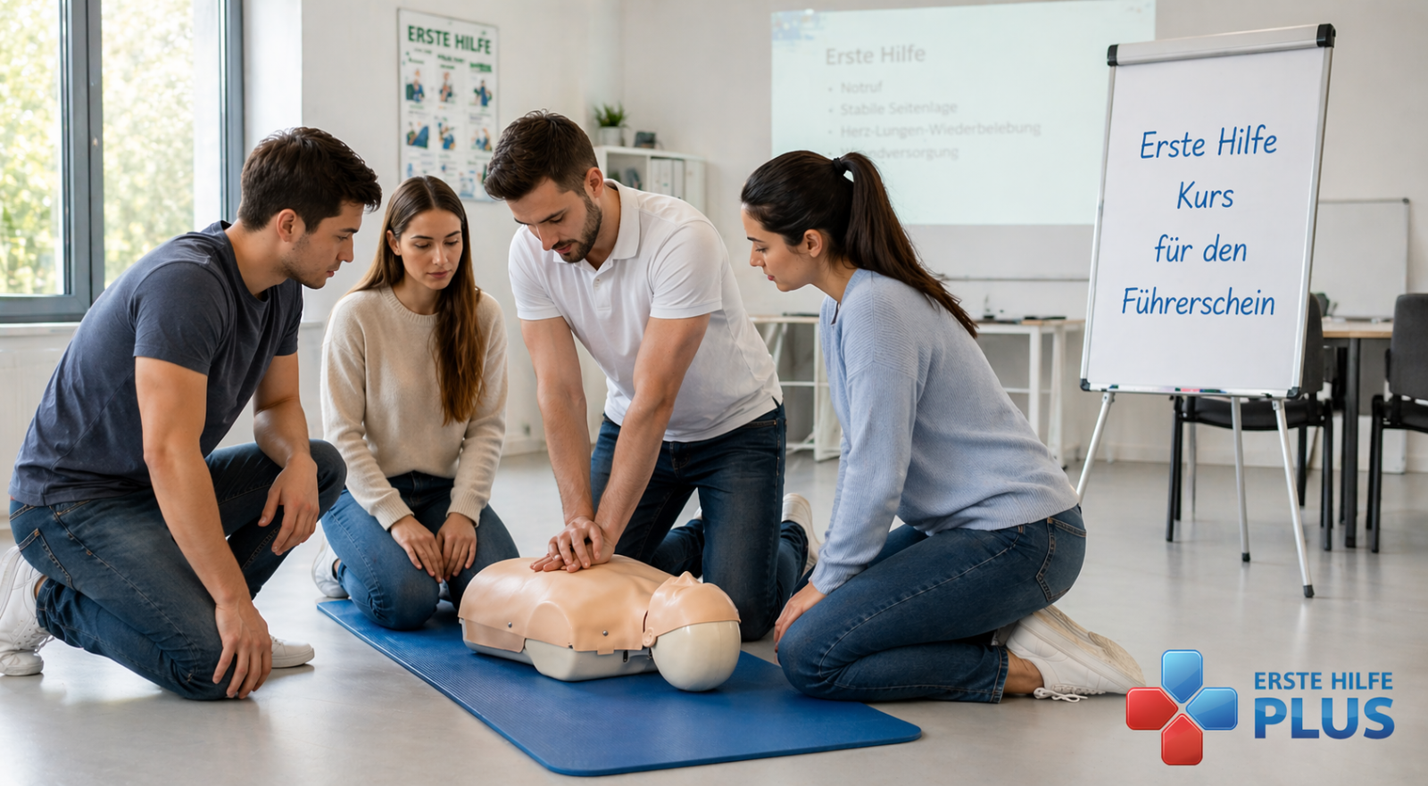 Du brauchst einen Erste-Hilfe-Kurs für den Führerschein? Dann bist du bei uns genau richtig! Unsere zertifizierten Kurse sind offiziell anerkannt und gültig für alle Führerscheinklassen (B, BE, A, A1, A2, AM, C, CE, C1, C1E, D, DE, D1, D1E).